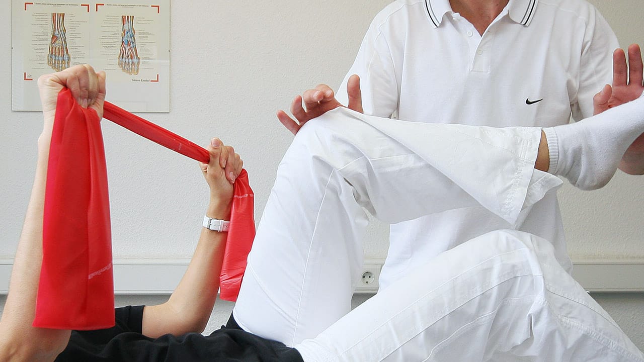 Ob im Sitzen, im Stehen, auf dem Rücken oder Bauch liegend führen Physiotherapeuten die Bewegungsabläufe mit Ihnen durch und überwachen die korrekte Haltung.